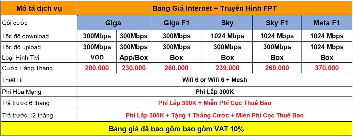 Bảng Giá Combo Internet + Truyền Hình Ngoại Hạng Anh FPT Play